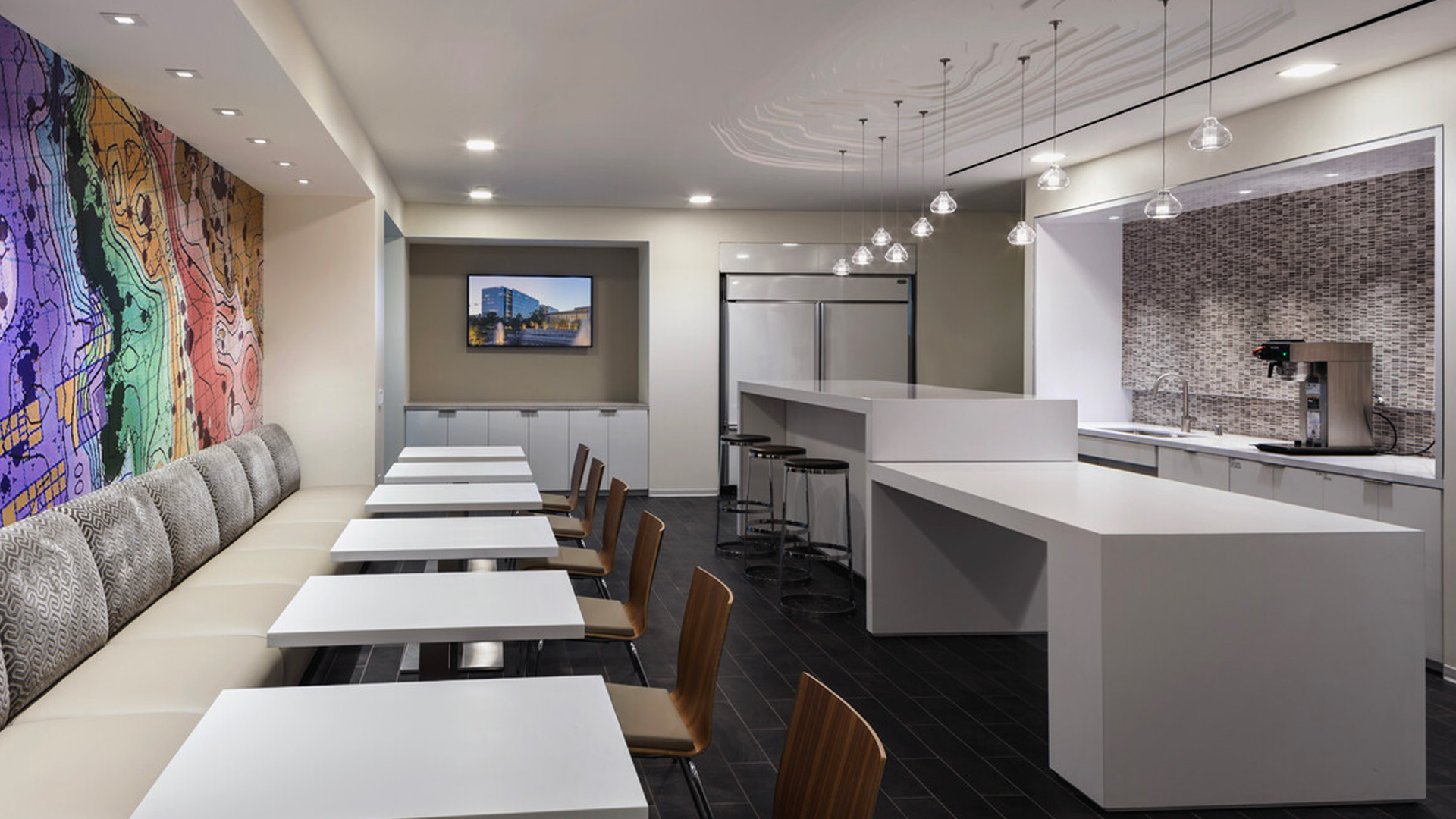 A modern, state-of-the-art lobby space welcomes employees and guests, while a recreational basketball court can be easily converted into a multipurpose event space to host larger team building or corporate events. Topping it all off is a picturesque green roof blanketed in functional vegetation.